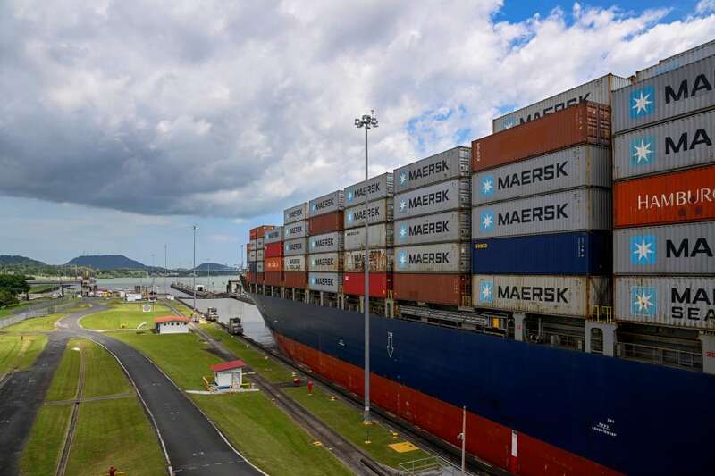 在巴拿马运河的米拉弗洛雷斯船闸旁,来自世界各地的游客聚集在观景台上。随着闸内水位渐渐降至海平面高度,一艘巨型集装箱货轮在两侧轨道牵引机拉动下缓缓通过船闸,驶向浩瀚的太平洋。