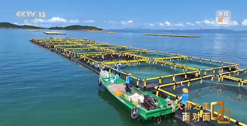 潘放:下面全部是养蚝的,绵绵不断,像竹排一样。这么大的面积,我们的桥要从这里经过。