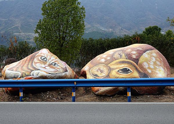 湖北宜昌:彩绘石趣味横生 扮靓三峡公路