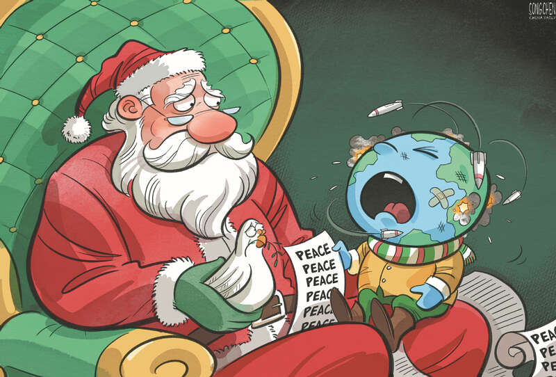 圣诞节愿望清单:要和平不要战争。(来源:中国日报 宋晨 英文《中国日报》2024年12月23日8版)