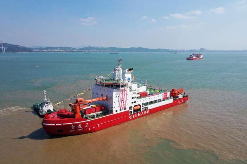 2024年11月1日,“雪龙”号和“雪龙2”号船从广州南沙国际邮轮母港码头出发(无人机照片)。新华社记者 黄国保 摄