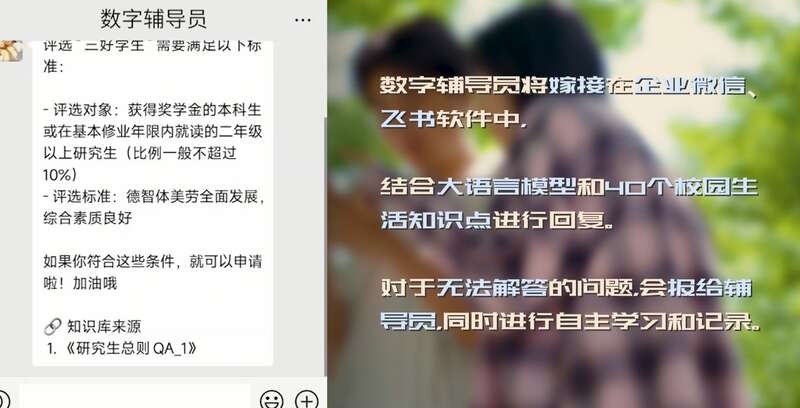 韩荣铎带领团队创作的“灵犀智辅”也入围了总决赛。他们关注到高校辅导员因繁琐的日常事务而分身乏术的问题,利用AI打造了“数字辅导员”。“我们将智能问答机器人打造成辅导员,不是希望用大模型代替他们,而是用AI把人从冗余的工作中解放出来。”韩荣铎说。