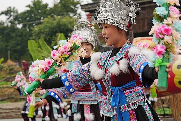 广西柳州:苗族同胞欢聚“打同年” 主客寨共踩堂传承非遗