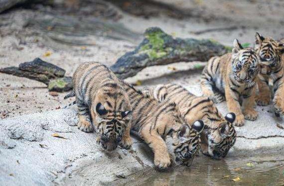 广州长隆孟加拉虎“五胞胎”亮相“开荤”