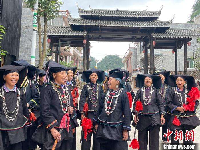 冬日午后,广西百色市那坡县坡荷乡中山村内,妇女身着黑色古朴服饰,唱起高亢嘹亮的山歌。