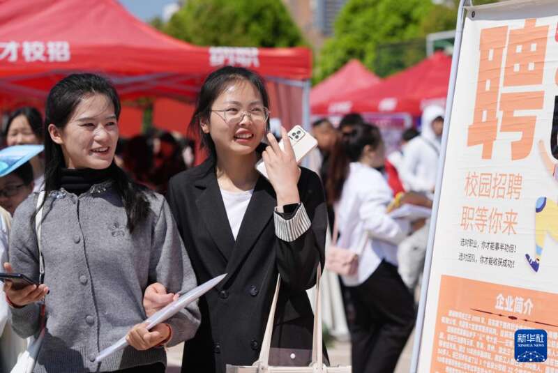 2024年3月23日,在云南昆明,求职大学生在高校毕业生双向选择洽谈会上了解岗位信息。