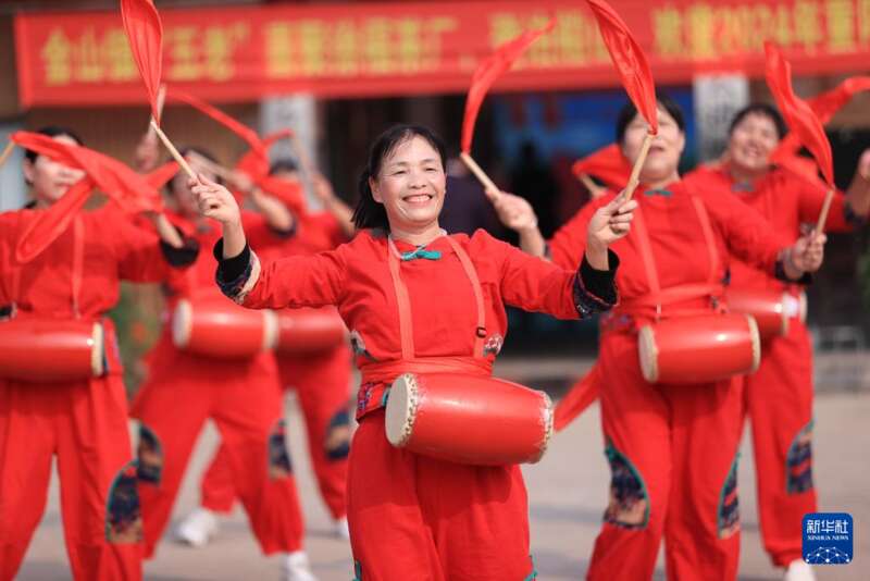 2024年10月11日,老人在江苏省连云港市赣榆区金山镇举办的“我们的节日·重阳”主题活动中表演节目。