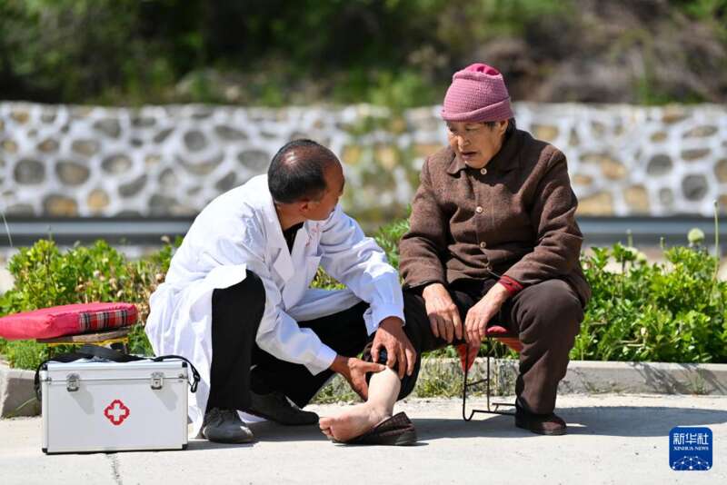 2024年5月9日,山西省平顺县东寺头乡七子沟村村医王文吉(左)为村民看病。