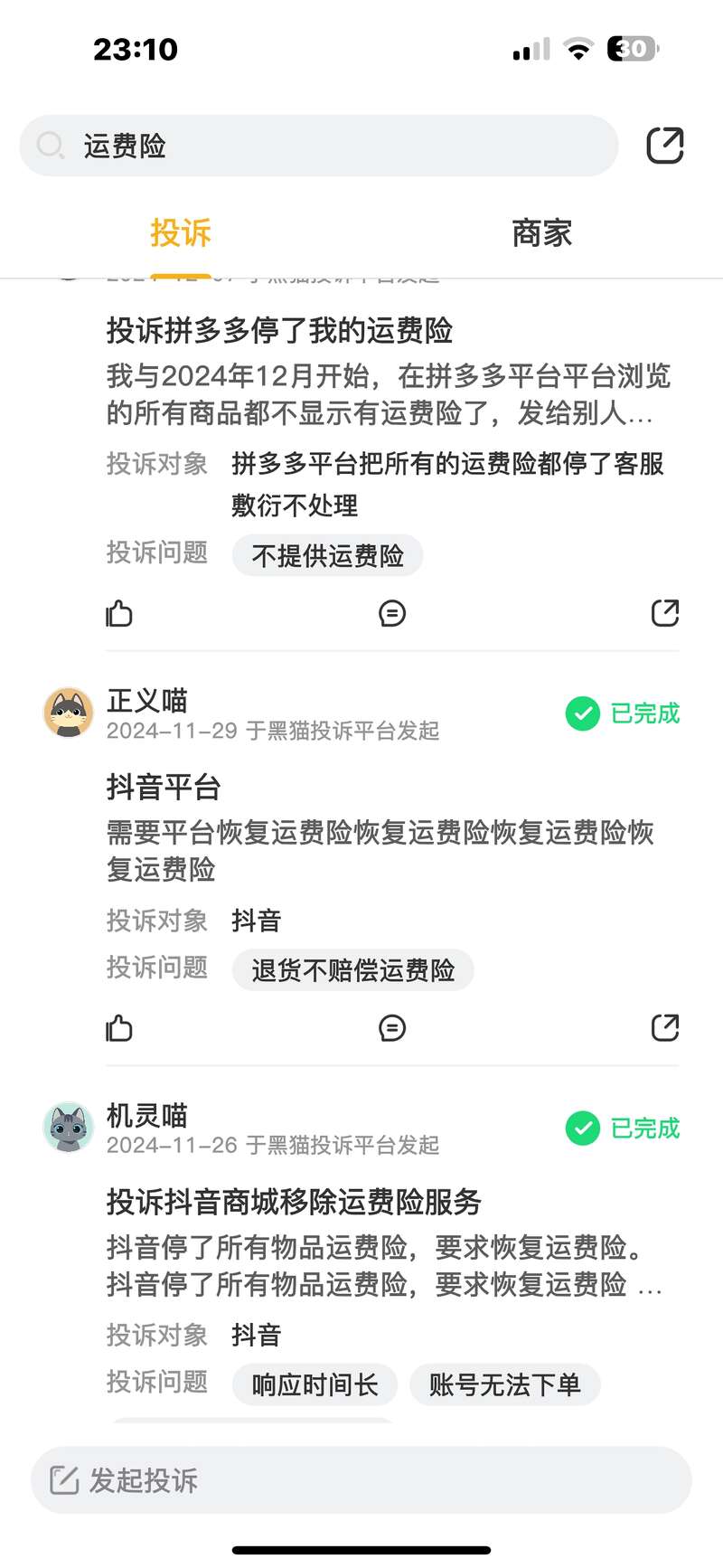 记者在黑猫投诉平台搜索发现,近期消费者关于“运费险被强制关闭”的投诉越来越多。不少消费者表示,运费险已经是自己网购的“标配”,突然没有了很不适应。“这次双十一我买的厚外套不合适,退货时才发现运费需要自己出,因为衣服超重,运费花了三十多元。”买家张女士深有感触地说,有运费险确实能让购物多一份保障。