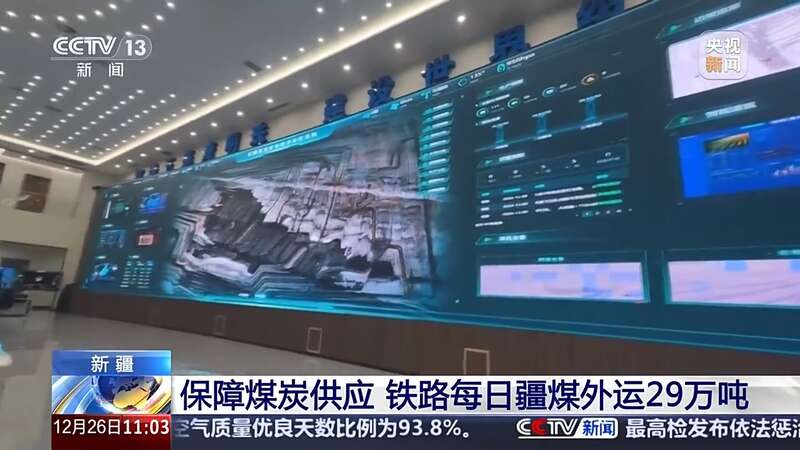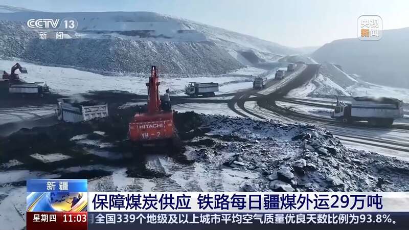 国铁乌鲁木齐局乌鲁木齐铁路物流中心准东营业部党支部书记 李兆峰:冬季以来新疆铁路疆外煤炭列车保持高位运行,每日发送29万吨以上,运力水平同期增长了50%,今年铁路疆煤外运量超9000万吨,同比增长了约5成。