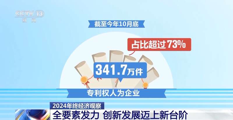 截至今年10月底,国内有效发明专利拥有量达到466万件,其中,专利权人为企业的达341.7万件,占比超过73%。