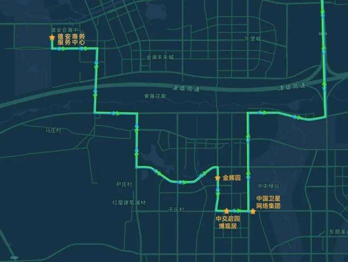 京雄通勤定制快巴线路 雄安新区端线路走向及上下客点位图 图片来源:“北京交通”微信公众号