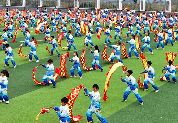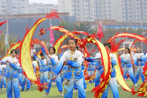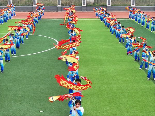 2024年12月25日,江西省吉安市泰和县浙大求是学校学生在大课间进行彩带龙舞龙表演。