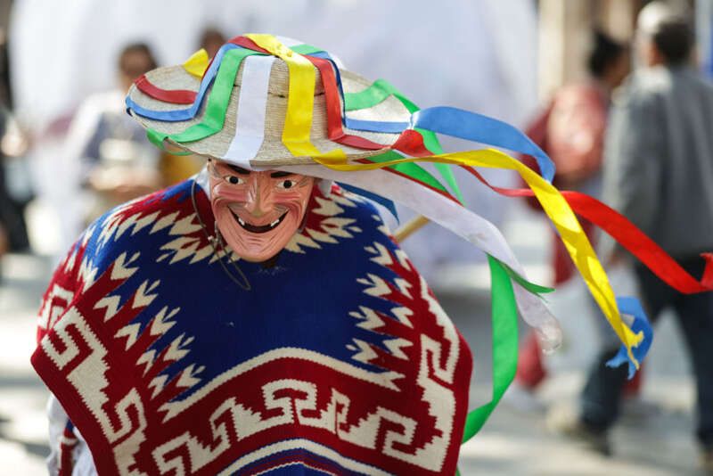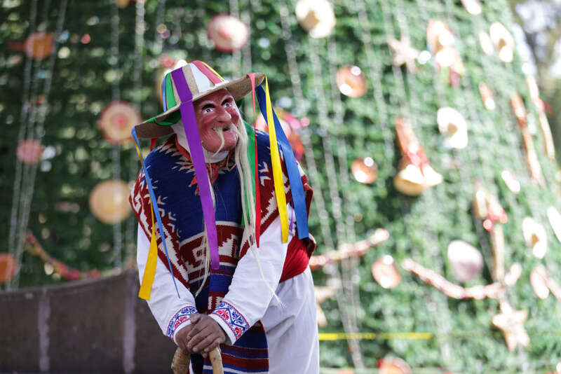 墨西哥面具舞中的“老者之舞”是墨西哥米却肯州最具代表性的传统舞蹈之一,起源于普列佩查原住民文化。这种舞蹈以其充满活力的表现形式和文化象征而闻名,据说发展自墨西哥独立之前人们向心目中的神明祈求丰收的仪式。在木屐的声响与装饰草帽的彩色丝带互相映衬之下,每当老者之舞上演,米却肯州帕茨夸罗的广场便化身为一座承载古老记忆的舞台。