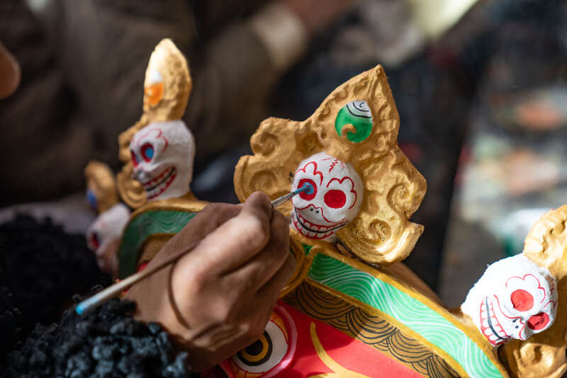 20世纪90年代,西洛就跟随师父在西藏各地制作藏戏面具。一开始,他认为面具制作只是一门糊口的手艺。但其实面具在藏戏表演中十分重要,演员表演藏戏时无需化妆,主要是戴面具表演。整体上看,藏戏分为白面具戏和蓝面具戏。在同一台藏戏中,又会出现红、白、蓝、黑、黄等不同颜色的面具,代表不同身份。