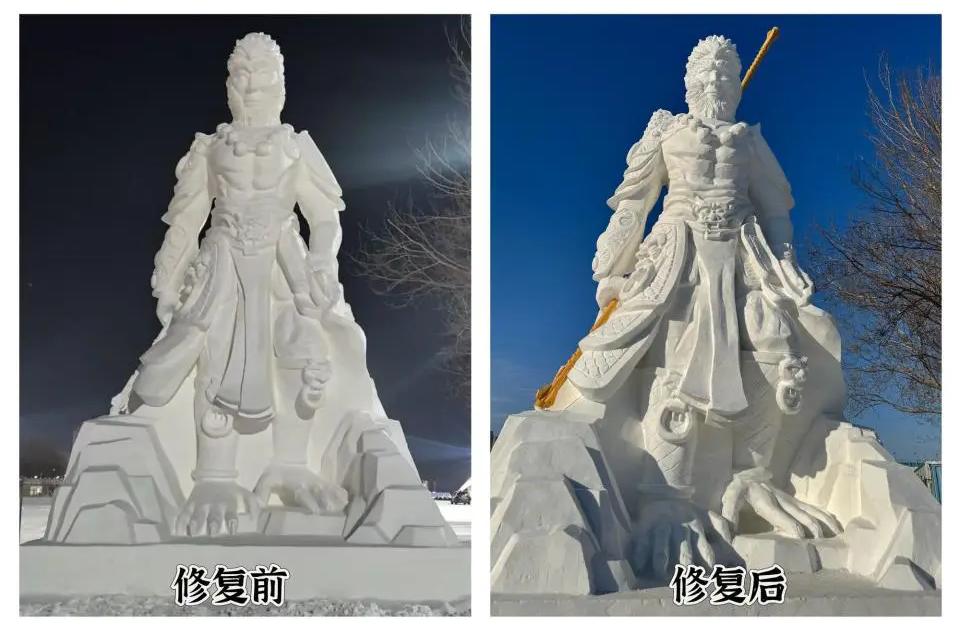 “黑悟空”雪雕自带苹果肌遭嘲讽,佳木斯文旅:连夜施工,成品超帅!