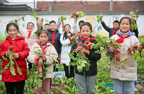 江苏南通:冬令蔬菜喜丰收 蒲西小学劳动教育“种”出精彩