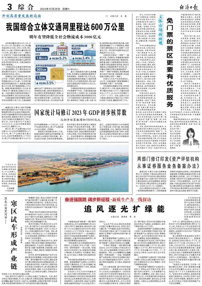 全年客运量将达到645亿人次,日均1.8亿人次,同比增长5.2%;货运量有望达到565亿吨,日均1.5亿吨,同比增长3.5%;港口货物吞吐量有望达到175亿吨,同比增长3.4%……国新办27日举行的“中国经济高质量发展成效”系列新闻发布会上发布的数据显示,2024年我国交通运输行业顺利完成各项年度目标任务,交通运输服务质效不断提高。