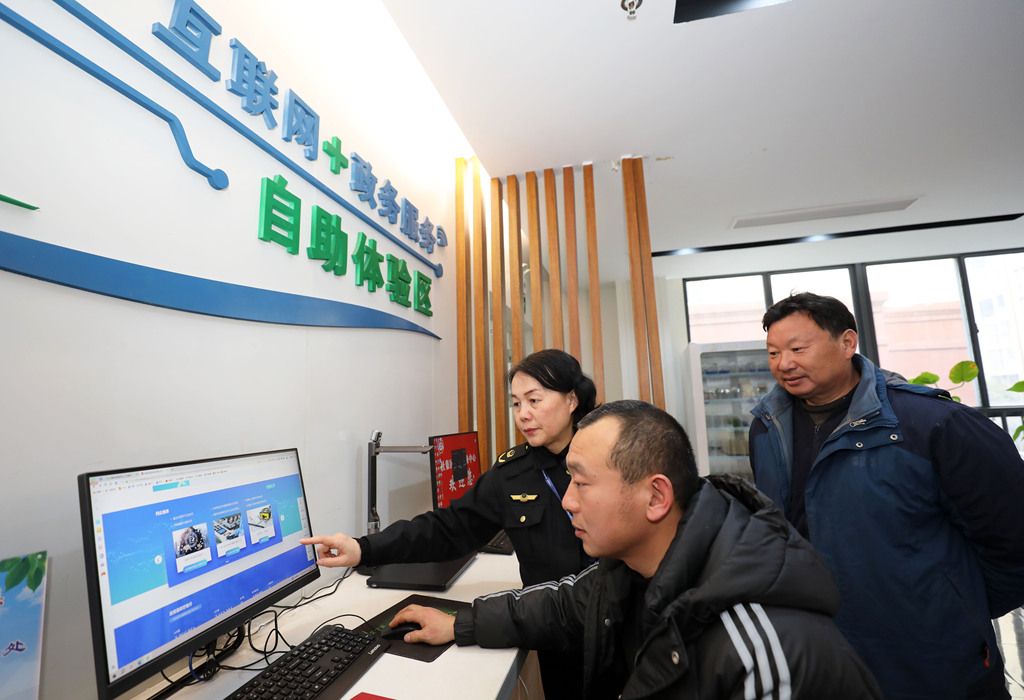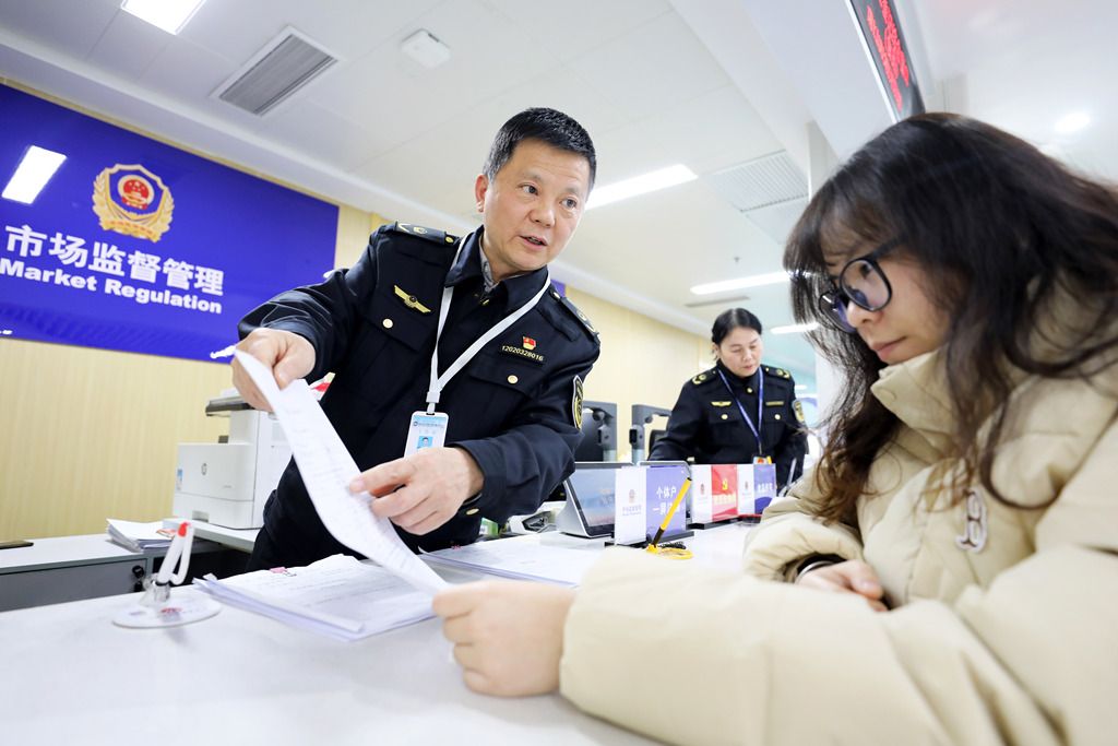 2024年12月27日,新年来临之际,群众在安徽省淮北市杜集区政务服务中心利用个体登记智能自助审批一体机快速办理个体工商户注册,并自助打印的营业执照。