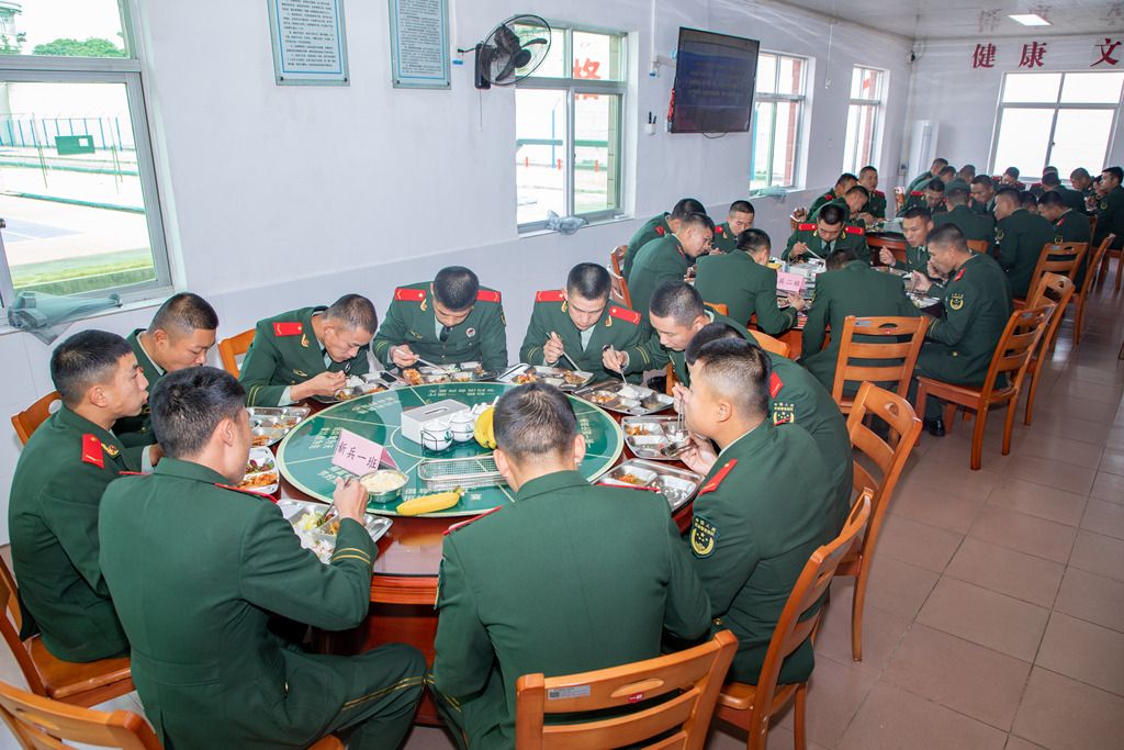 2024年12月28日,广西北海,新兵正在吃下队后的“第一餐”。