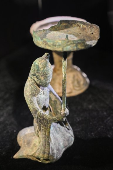 此次展出的13件古代灯具均源自金山博物馆,其中不乏首次公开展出的馆藏瑰宝。展览精心挑选了先秦两汉、三国两晋南北朝、隋唐五代、宋金元、明代及清代这六个关键历史时期的代表性灯具,每一件古灯都深刻烙印着其所属时代的独特历史风貌:先秦两汉时期的青铜人形灯与陶制豆形灯,彰显了当时科技发展与生产力的进步;两晋时期的熊形灯与元宝灯,映射出魏晋时期独特的美学追求与时代风尚;宋代省油灯的出现,证明了当时商品经济的蓬勃发展;而明清时期的挂壁灯与宫灯等,则展现了中国人生活方式与生活美学的渐进变迁。