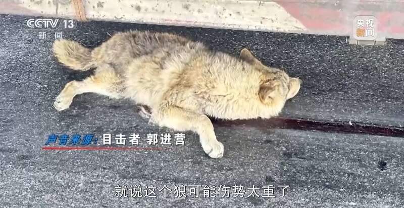 目击者 郭进营:工作人员来了以后,就说这个狼可能伤势太重了。先摸了摸,不动,都已经僵硬了。
