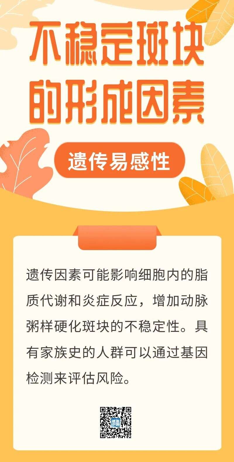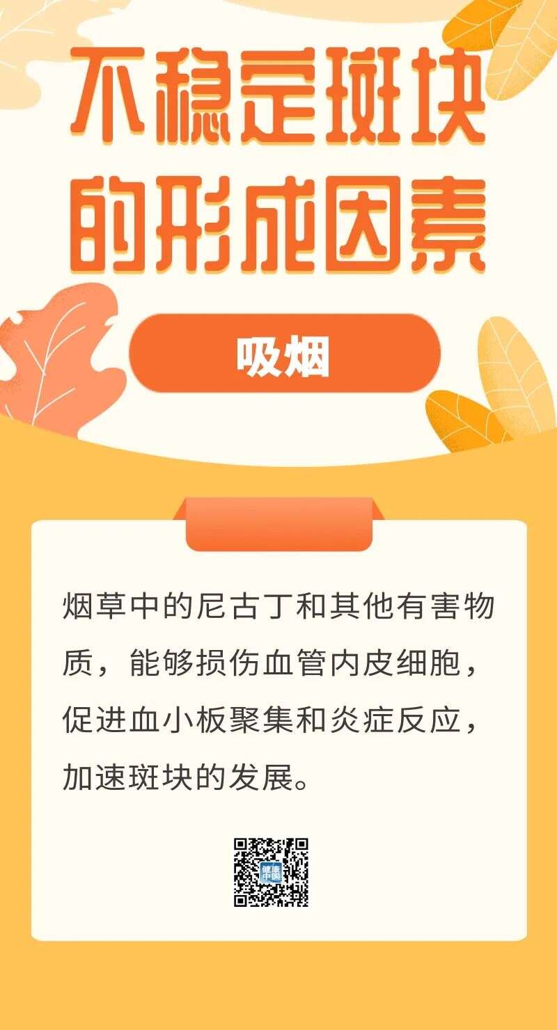 稳定性斑块通常具有较厚的纤维帽、较小的脂质核心和较少的炎症细胞。这种较厚的纤维帽就像一层坚固的保护层,使斑块稳固,不易破裂或脱落,因此,引发卒中的风险较低。相反,不稳定斑块的纤维帽较薄,在情绪激动、剧烈运动、酗酒、寒冷等诱发因素的影响下,可能会发生纤维帽的破裂,导致斑块破溃和脱落。
