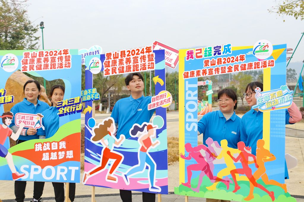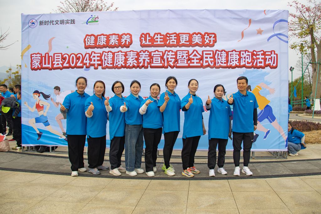 2024年12月29日,广西梧州市蒙山县城北湿地公园,蒙山县举办2024年蒙山县健康素养宣传暨全民健康跑活动,现场有500人参加,环绕县城湿地公园健康步道健康跑,全程约3公里。旨在通过全民健身活动,提升公民健康素养水平,倡导健康生活方式,传播健康理念,欢乐迎接新年到来。