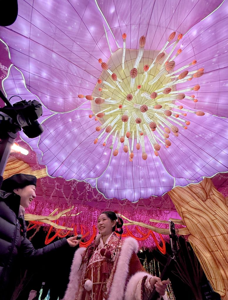 本届“北京千灯夜”现场汇聚超过千组自贡彩灯。600余名彩灯师傅用传承千年的非遗技艺打磨出一个流光溢彩的奇幻世界。灯会包含“遇见仙境、遇见华章、遇见繁华、遇见未来”四大篇章,现场特别设置了“国风旅拍馆”,为游客提供一站式服装租赁、妆造设计与专业拍摄服务,既是“看画人”,亦是沉浸式体验的“画中人”。