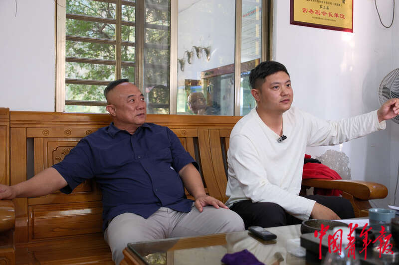 12月19日,海南乐东,洪小贺(右一)与父亲洪宜展(右二)在渔业养殖基地内,洪宜展在上世纪90年代来到海南,是最早一批在海南发展石斑鱼苗孵化及养殖的台商,多年来不断探索人工孵化技术繁育名贵海水鱼,靠售卖鱼卵和鱼苗成为海南“石斑鱼大王”。中青报·中青网记者 田嘉硕/摄