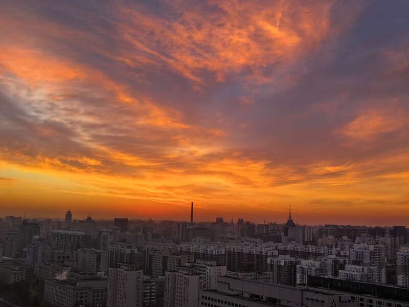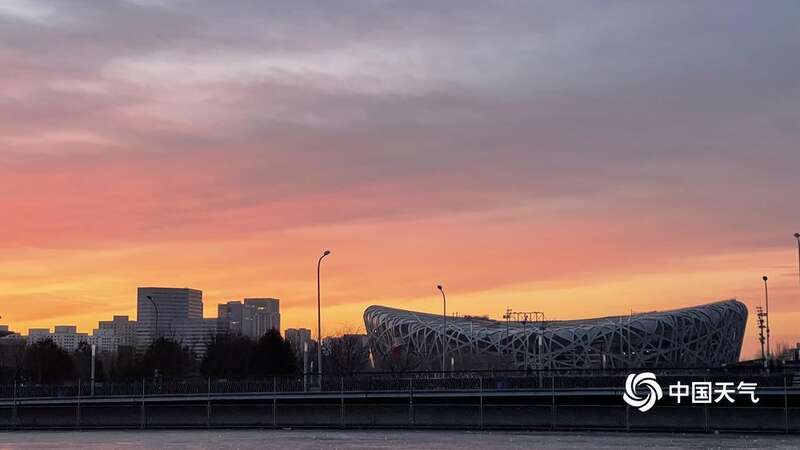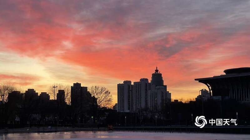 周末早起的人 先感受朝霞的美 来看北京的冬日暖色