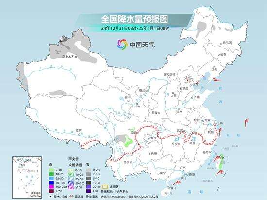 全国大部在升温中迎接2025年 西藏青海等地有明显降雪