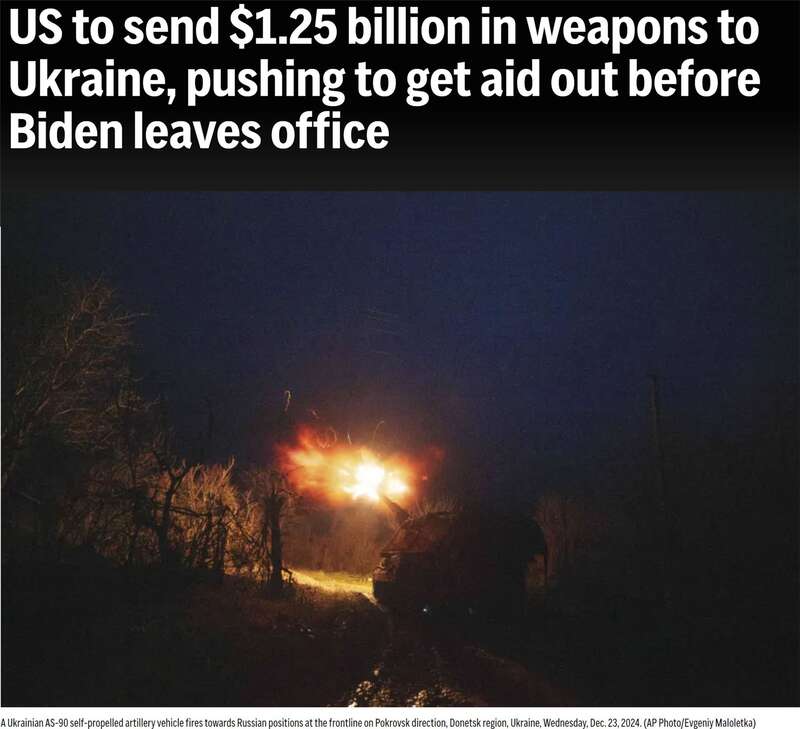 美联社28日援引多名匿名官员的话报道称,拜登政府计划在明年1月卸任前再向乌克兰提供12.5亿美元的新一轮军事援助,其中包括用于“国家先进地空导弹系统”和“鹰”式防空导弹系统的弹药、“毒刺”防空导弹以及155毫米和105毫米口径火炮炮弹等。