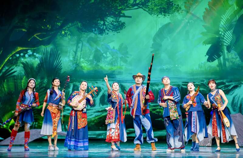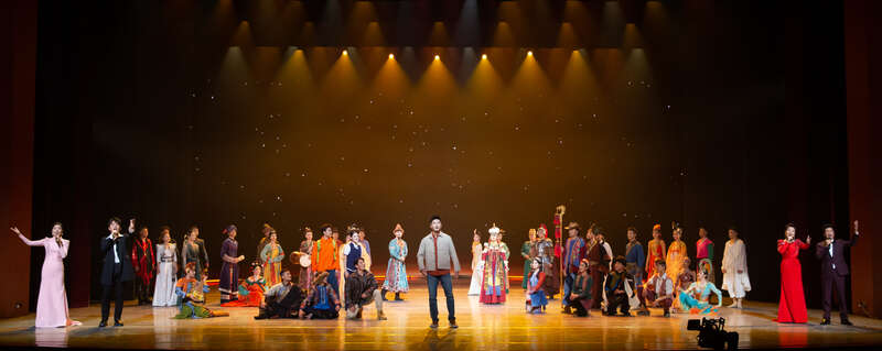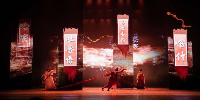 第二篇章中,“当代青年”走进祖国的大好河山,在丝绸之路上看到古龟兹舞蹈等描绘出“万里驼铃万里波”的画卷;在马骨胡、月琴、木叶、玎琴、芦笙等多种西南地区特色民族乐器的交响中,聆听各民族共同创造的和美旋律;在少数民族所创作的诗词曲中,看到不同朝代、不同地域、不同民族的中华儿女,都有着共守国土、维护统一、和平幸福的家国愿望。