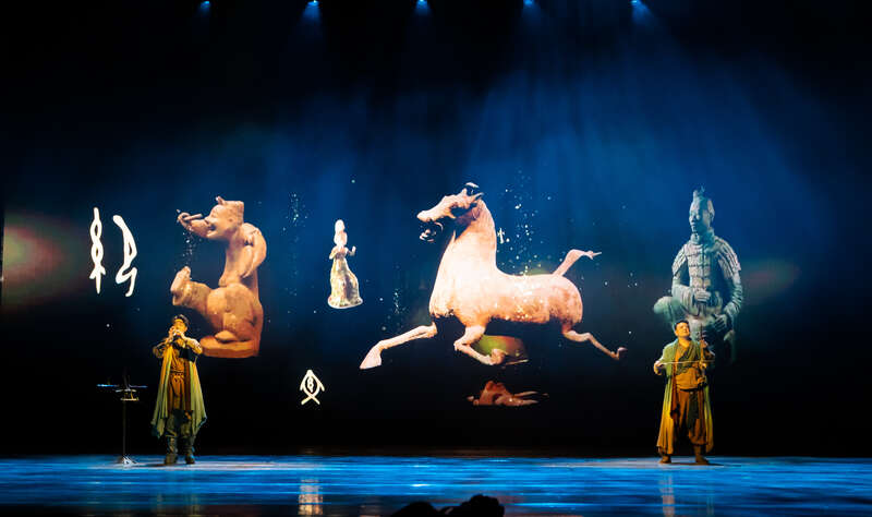 演出分为“序幕”“尾声”以及“古今共鸣”“万疆共美”“家园共筑”三个篇章。“当代青年”作为戏剧人物串联全场,以音乐短剧、情景器乐演奏、新创器乐秀以及舞蹈表演等多种形式,呈现一场跨越时空的中华文化盛宴。