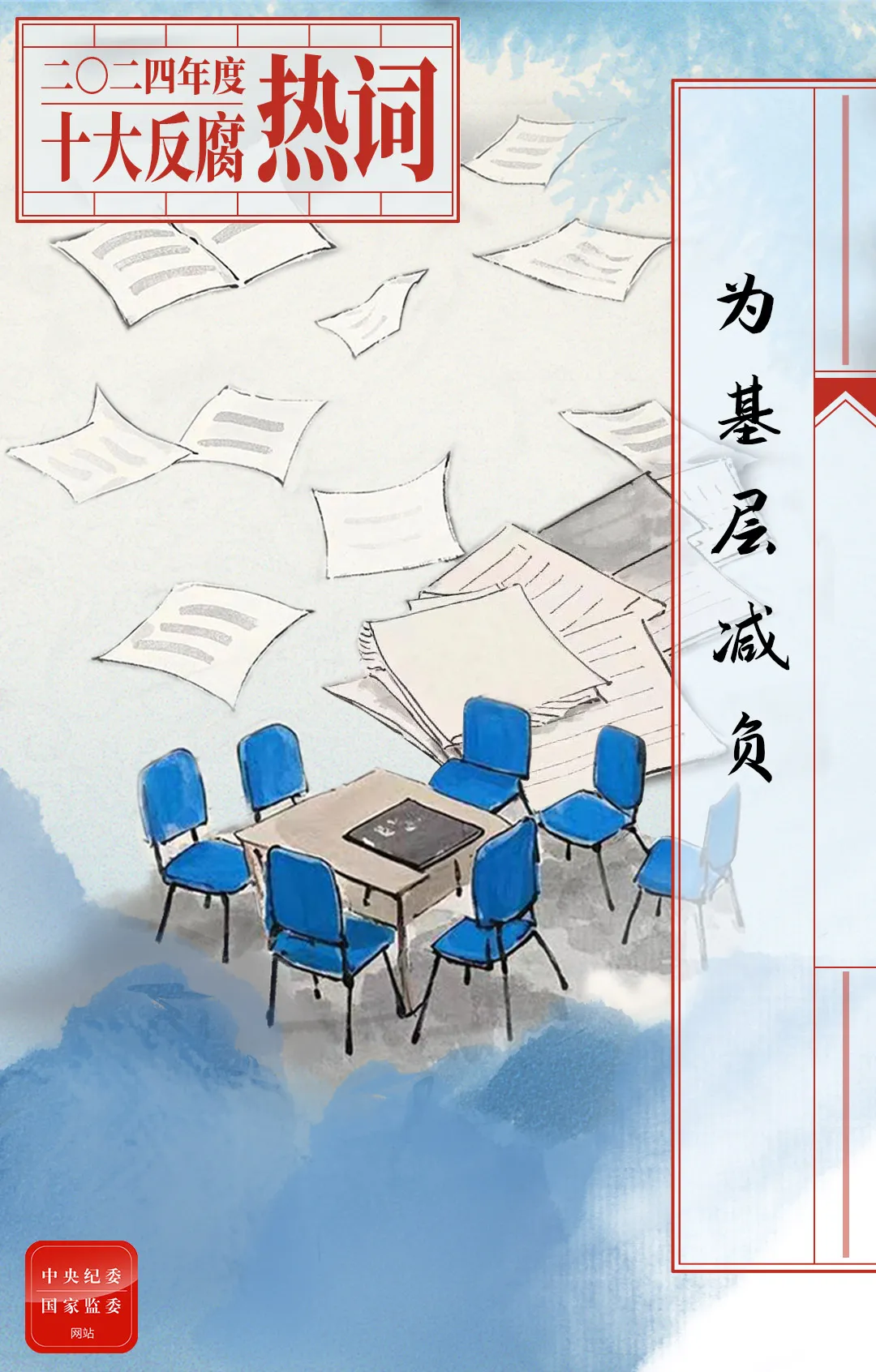 治国安邦,重在基层。整治形式主义为基层减负,是党中央连续6年专门部署推动的重要工作。2024年,为基层减负工作持续发力、不断向纵深推进。7月,党的二十届三中全会明确提出“健全为基层减负长效机制”。随后,中共中央办公厅、国务院办公厅印发《整治形式主义为基层减负若干规定》,首次以党内法规形式制定出台为基层减负的制度规范。今年以来,中央层面整治形式主义为基层减负专项工作机制办公室通报5批15起典型问题。纪检监察机关充分发挥职能职责,把纠治形式主义、官僚主义摆在更加突出位置,加大纠治力度,持续为基层减负松绑、赋能增效。截至11月,2024年全国共查处形式主义、官僚主义问题91655起,批评教育和处理134599人。