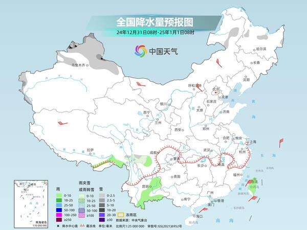 2024年最后两天,新疆和东北的降雪还会断断续续,不时现身。2025年元旦开始,四川、重庆、贵州等地阴雨雪天气将增多。