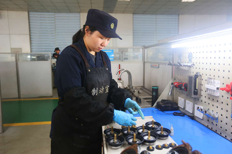 一个120型制动阀重约三四十斤。孙继宏每天要组装8个制动阀,需要从组装台上搬上搬下数十次,她干起活来,动作轻松自然,一点也不逊于男职工。