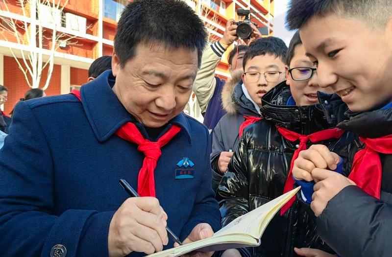 杨利伟现身北京市育英学校 少先队员化身“追星少年”求签名