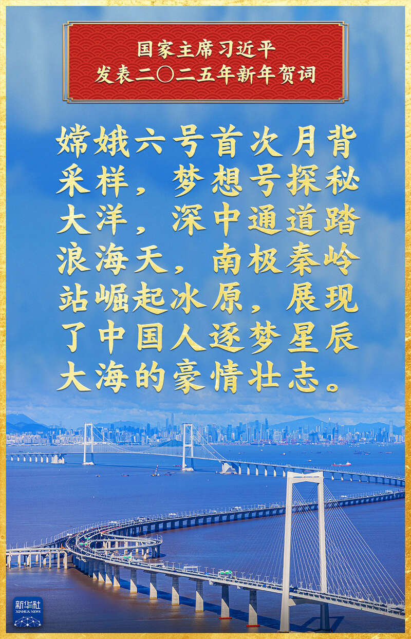 “新能源汽车年产量首次突破1000万辆,集成电路、人工智能、量子通信等领域取得新成果”“嫦娥六号首次月背采样,梦想号探秘大洋,深中通道踏浪海天,南极秦岭站崛起冰原”……这一年来的科技成就,总书记如数家珍。