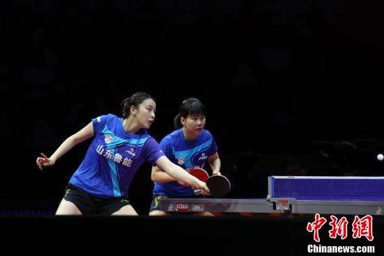 钱天一(左)陈幸同(右)在女子双打的比赛中。