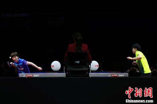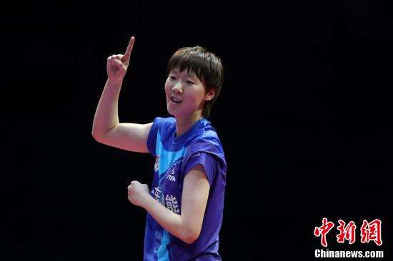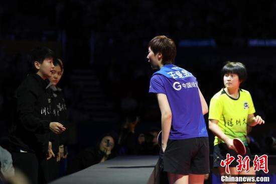 王曼昱(中)与孙颖莎(左)在比赛中就争议球展开讨论。