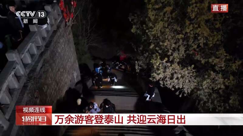 此时此刻,灯火里的中国,山东泰安还有不少人正拾级而上,奔赴泰山的“云海日出”,迎接2025年的第一缕阳光。