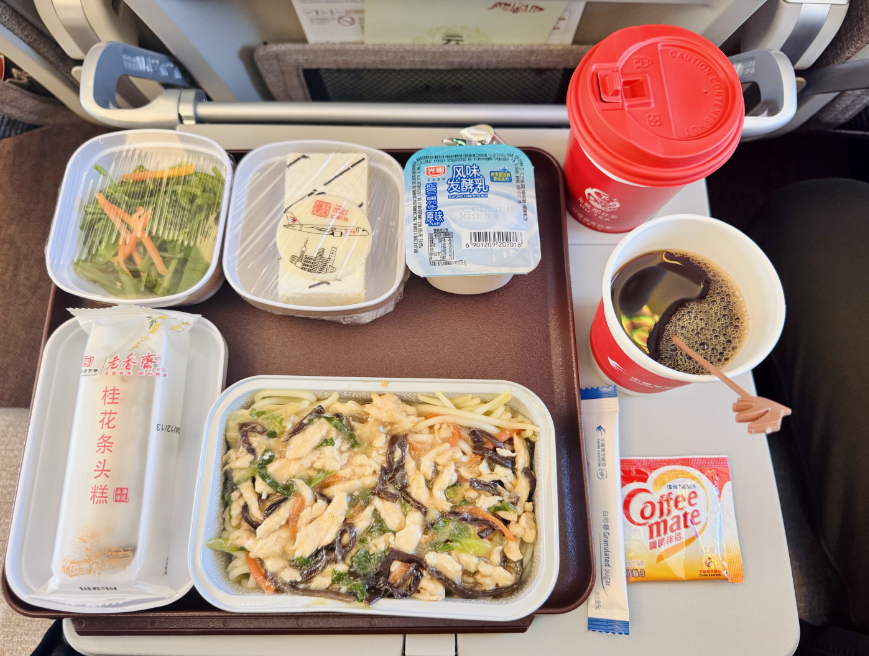 东航为C919沪港航线量身打造了“云上食·沪港同心”主题餐膳,以粤菜和上海本帮菜为主。在元旦当天上海虹桥始发的MU721首航航班上,公务舱旅客品尝到了港式蒸点配米粥搭配老上海小酱菜腐乳、具有上海本帮特色的“东航那碗面-本帮开洋葱油拌面”等;经济舱方面则是本帮蚝油鸡丝拌面,搭配此前C919航班上广受好评的大白兔牛奶及拌味小菜等。后续常态化商业定期航班上也将提供多种“港滋港味”和本帮老上海特色餐食,融合海派活力与香港滋味,单双月轮换。