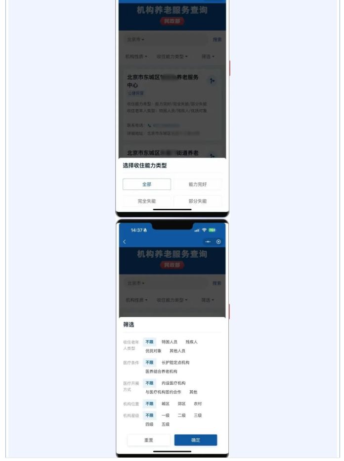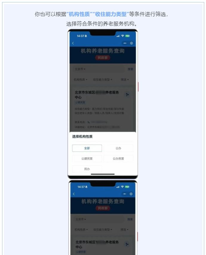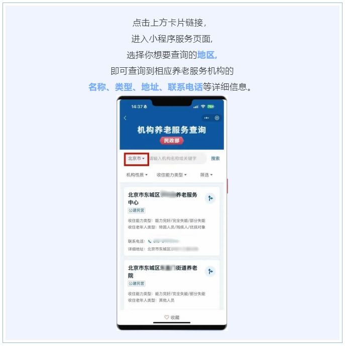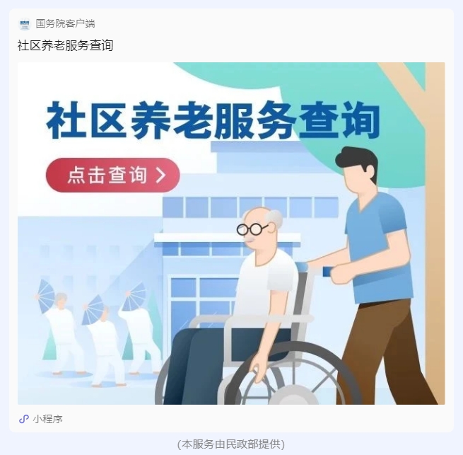民政部“机构养老服务查询”和“社区养老服务查询”