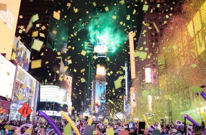 纽约时报广场百万人雨中迎新年
