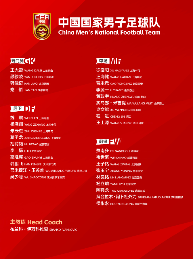 为进一步做好2026美加墨世界杯亚洲区预选赛18强赛备战工作,经国家队教练组研究、中国足球协会批准,中国国家男子足球队定于2025年1月9日至18日赴海南省海口市组织集训,这也是球队今年首次集训。