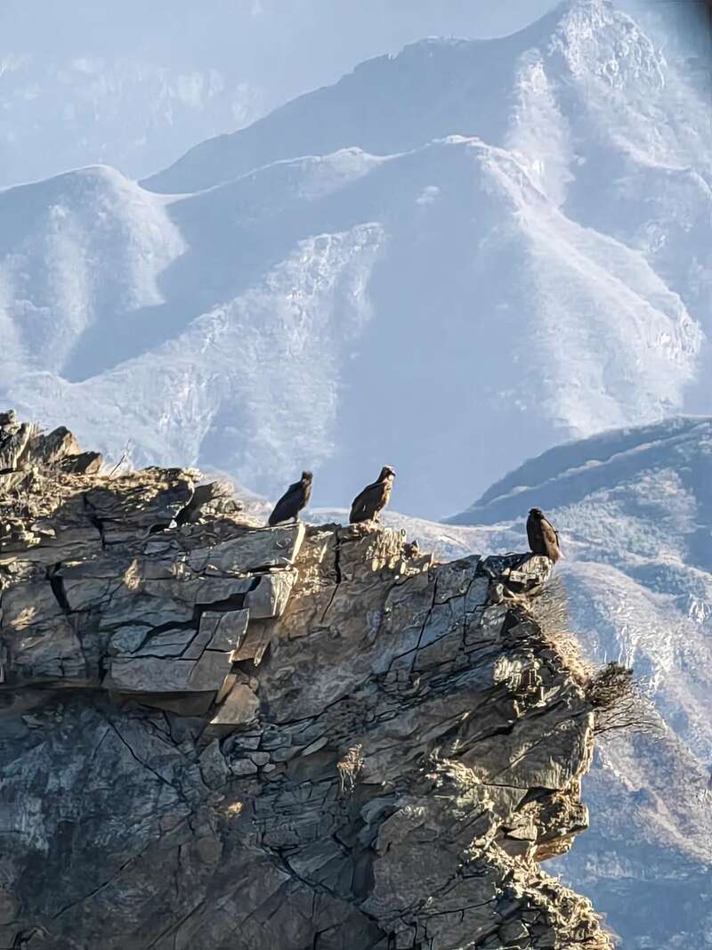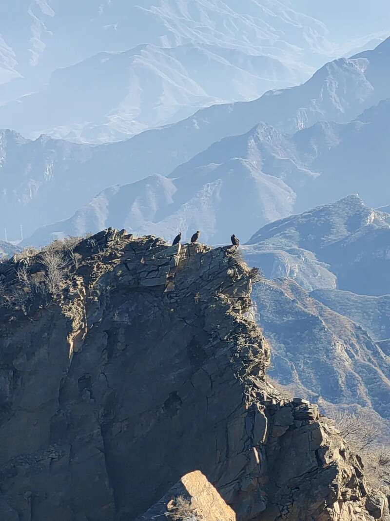 近日,摄影爱好者在房山区大安山乡西苑村拍到了国家一级保护动物秃鹫的身影,从拍摄的画面看到,种群数量从几只到几十只不等,它们时而在空中盘旋飞翔,时而在山崖驻足休憩,与远处的山峰勾勒出一幅自然和谐共生的优美画卷。