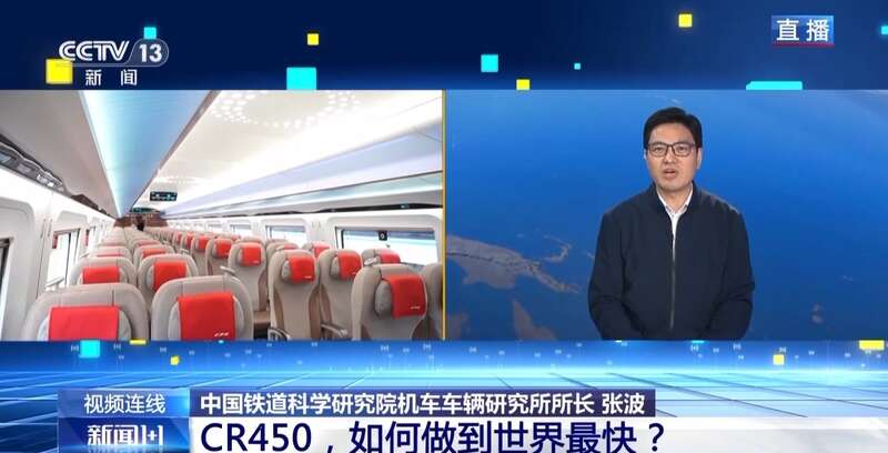 中国铁道科学研究院机车车辆研究所所长 张波:高铁的速度不仅是一个技术问题,更是一个经济问题,也要考虑对环境的影响去综合考量。但是速度是最能够代表高铁水平的一个指标,在高铁发展史上,大家对速度这个指标都非常重视,至于这个速度极限能到什么程度,取决于理论的支撑还有技术的突破,就像我们现在CR450速度提到400公里,它是通过一系列的技术突破,新材料、新结构、新器件的使用才能达到这个水平。
