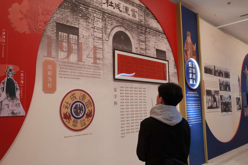 展览现场,游客观看富连成社“富”字科学员名录。 李怡蒙/摄